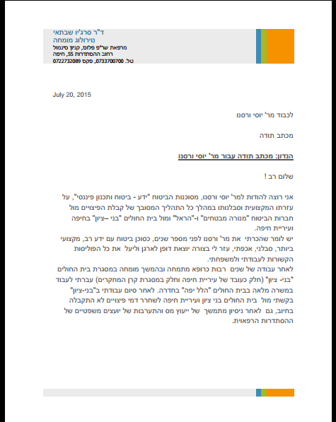 מכתב תודה ממוטי אביטן בעלי "משכנתא בקלות" יעוץ משכנתאות